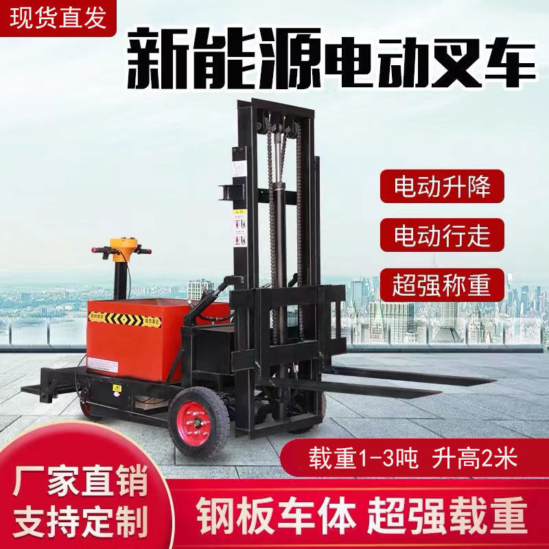 奎屯市小型电动叉车1吨站驾式2吨液压升高铲车全自动仓储堆高车
